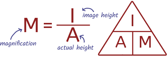 Magnification is how much bigger or smaller an object appears when you look at it through a lens or a microscope compared to its actual size.